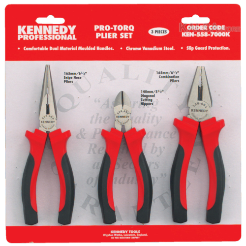 KEN-558-2110K - Pro-Torq 4-Piece Pliers Set, Non-slip Comfort Grip Handles, Kenendy