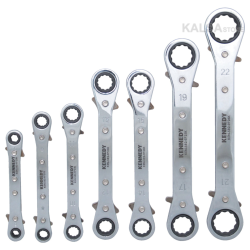 7pc 6-22mm Straight Rachet Ring Spanner Set, Kennedy